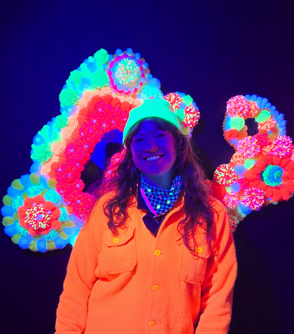 Sarah Thiessen is a self-taught visual artist living in Victoria, BC. Skilled in analogue light art, mixed-media sculpture, interactive festival installations, large-scale puppets, screen printing and graphic design, Sarah loves exploring new mediums and creating connections through collaborative projects. She is known for her playful, biology-inspired art that draws people in through vibrant colours and dream-like imagery, encouraging a child-like sense of curiosity and wonder.