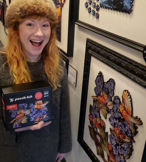 Puzzle Lab at 1233 Government Street in downtown Victoria carries Sarah’s original puzzle designs (Songbirds and Holly Daze).