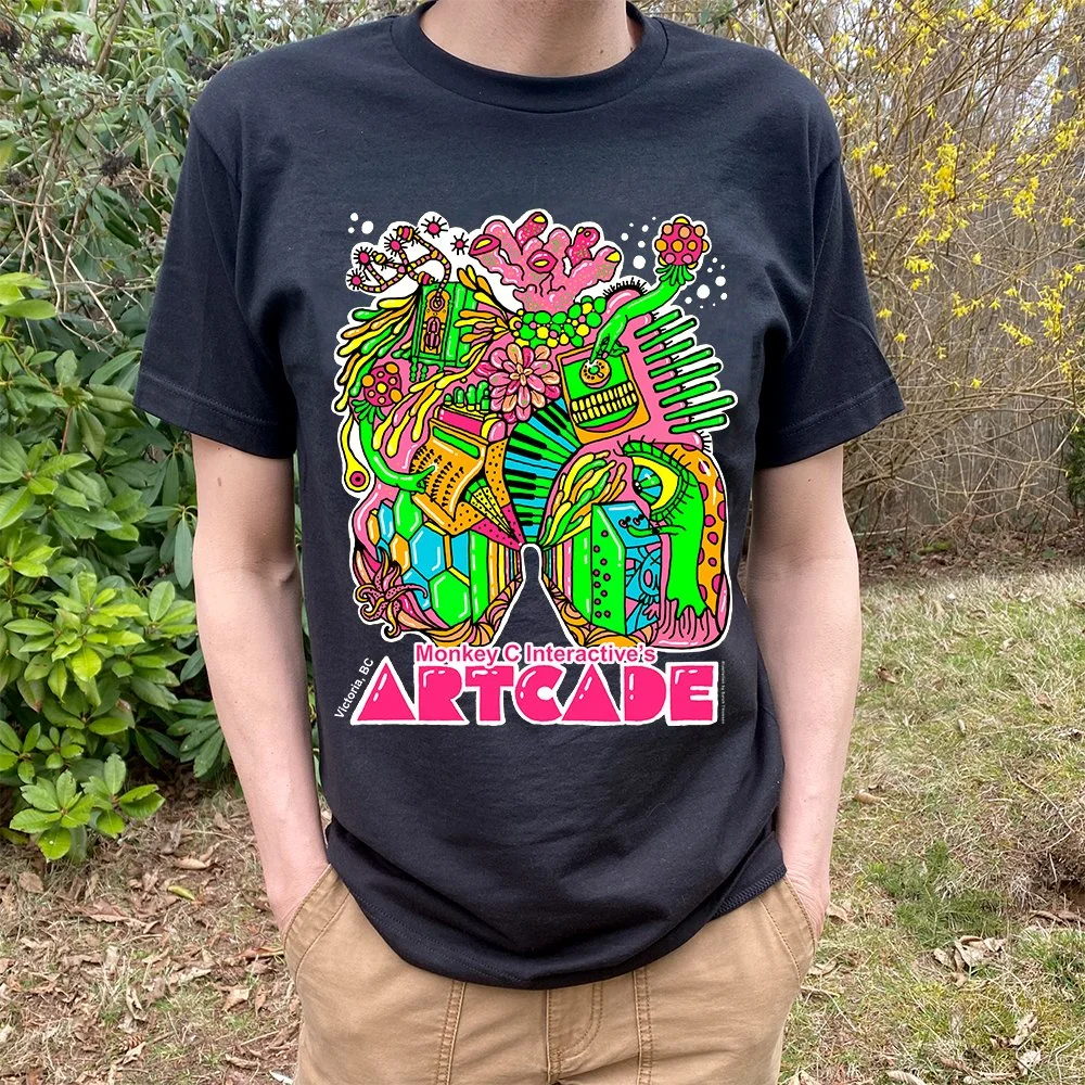 For the Artcade pieces I selected vivid neon colours that grab attention and feel surreal in a whimsical but also unsettling radioactive nuclear waste kind of way. I also thought a lot about how the colours would look under the colour changing LED lights and black lights and wanted to pick colours that would really come alive.